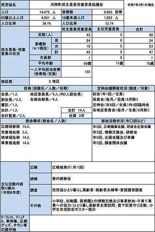 広報紙「民児協かなん」を発行し、民生委員・児童委員活動を広く知ってもらうために全戸配布しています。管内外研修会を行い、知識の共有をはかり、日々の活動に繋げています。