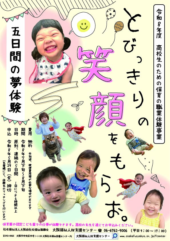 TEL : 06-6762-9006 e-mail : jinzai.taiken@osakafusyakyo.or.jp - 日時