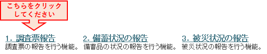 ログイン頂いた画面から以下の「1.調査票報告」をクリック頂き、ご入力下さい。