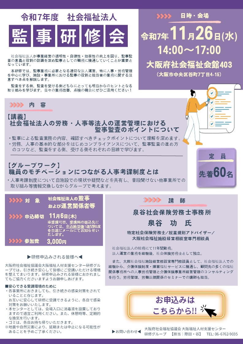 募集中 社会福祉法人監事研修 2025年11月26日(水)  【1日間】