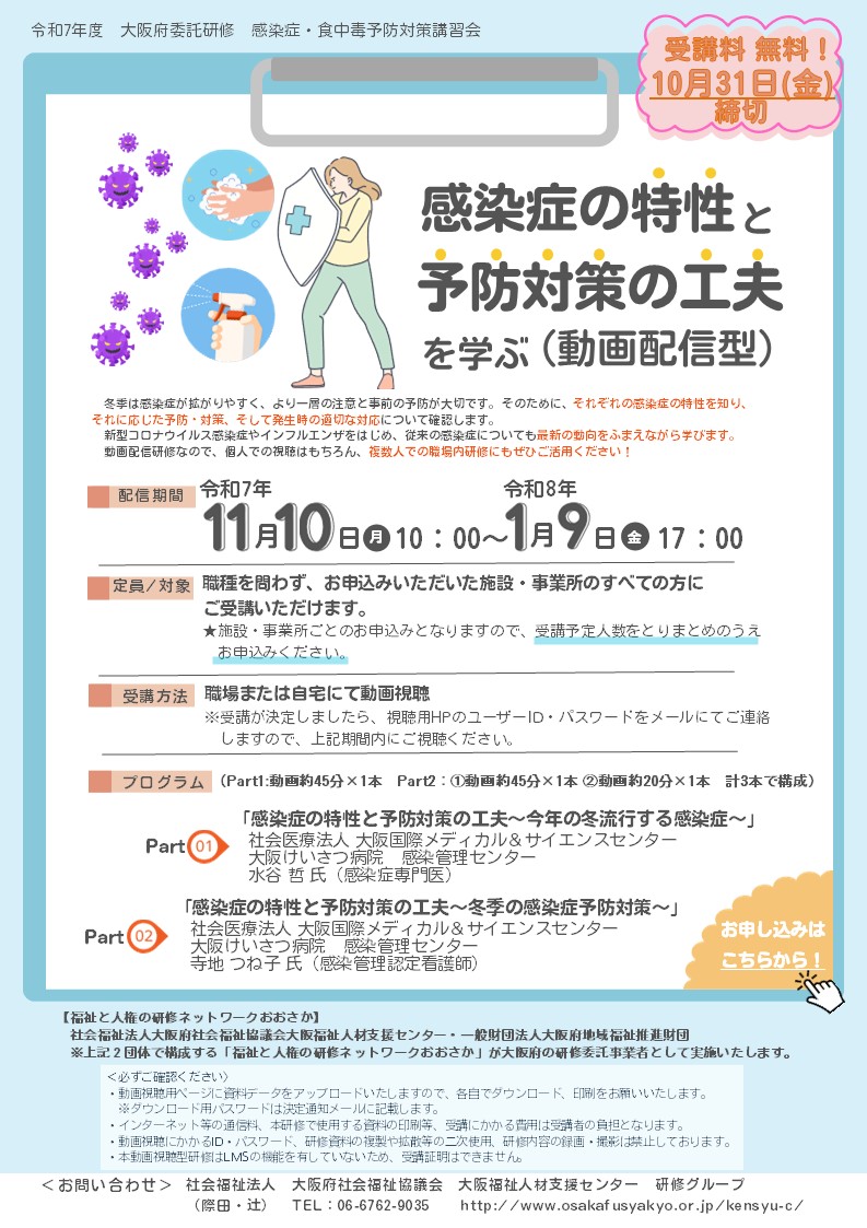 募集中 感染症予防対策講習会 2025年11月10日~2026年1月9日配信